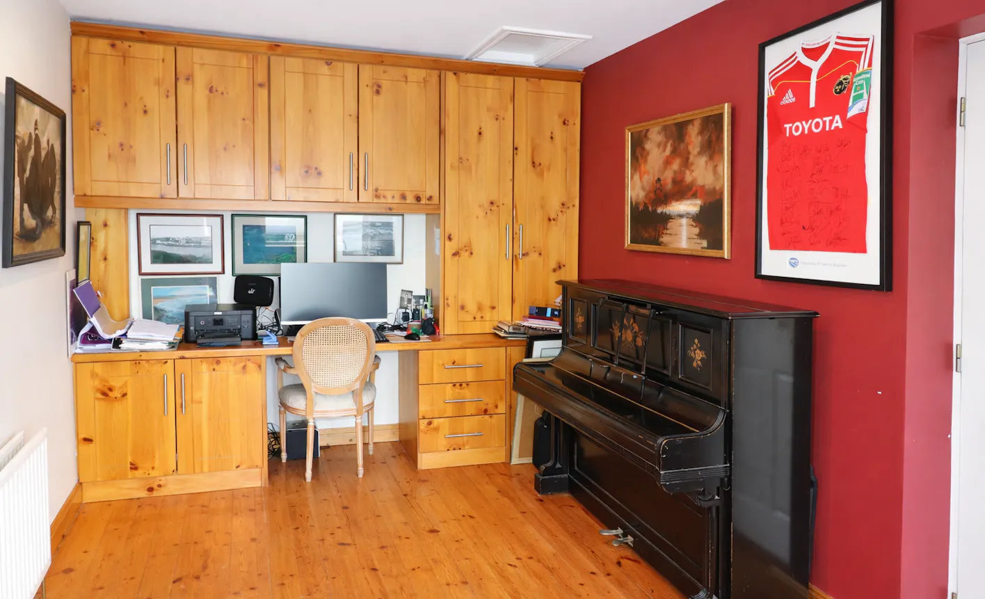 Upstairs, the property comprises three well-proportioned bedrooms, including a master suite with a private ensuite shower room. Each room features timber flooring and built-in wardrobes, designed to maximise both light and storage. Situated on an extra-large corner plot just a short stroll from the River Suir Blueway and the heart of Carrick-on-Suir, this home is presented in excellent repair throughout.
