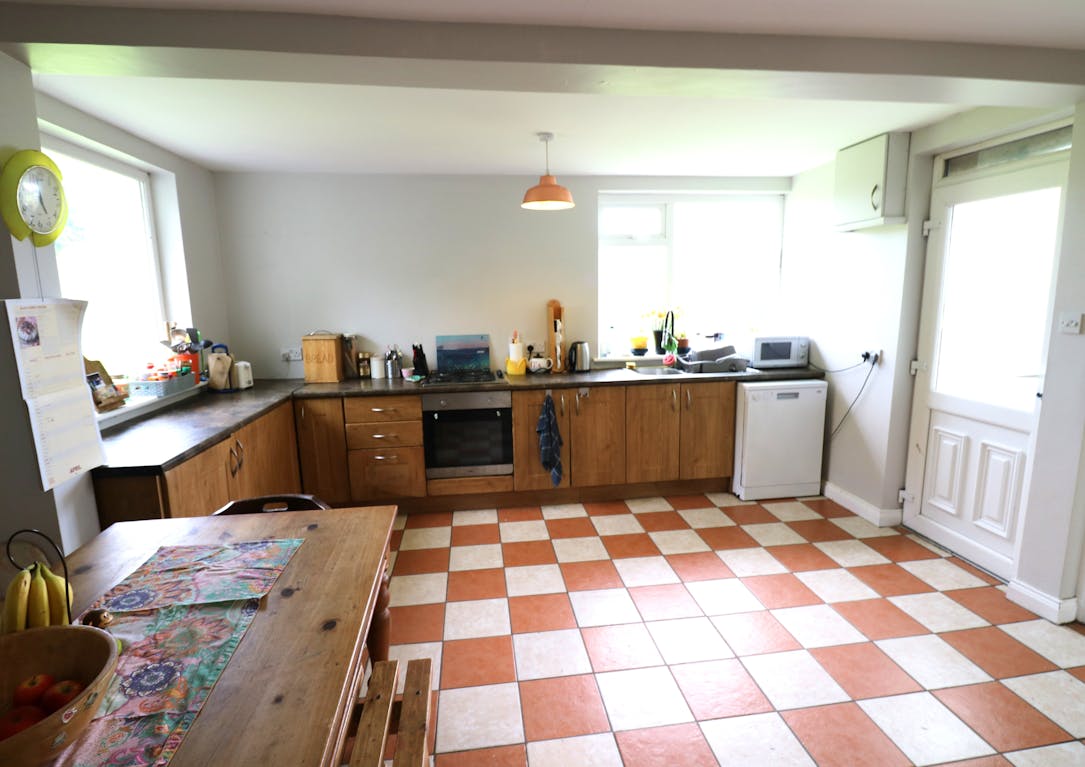 The residence is in good structural and decorative repair, featuring double-glazed windows and doors, along with oil-fired central heating. Accommodation includes an entrance hall, sitting room, kitchen/living room, three bedrooms, bathroom, and a utility/back porch.